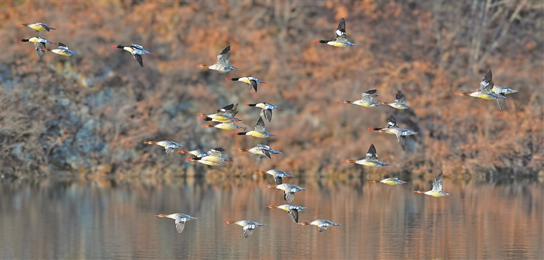 冬去春来之时,有一种生灵会缕缕行行地从南边越冬地飞回朔方,在长白山脉、大小兴安岭等地区繁育后代。它们即是有“鸟中大熊猫”之称的中华秋沙鸭。