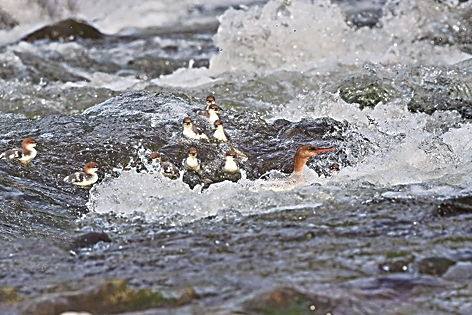 鸭姆妈率领雏鸭在河水中巨流勇进。徐祥华 摄
