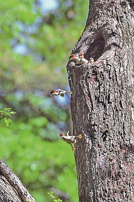 刚配置不久的雏鸭跳出树洞。徐祥华 摄