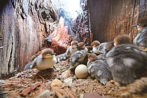 与大无数水禽不同,中华秋沙鸭频繁礼聘在山林中的自然树洞筑巢、孵蛋。当雏鸭破壳而出,滚球app官网鸭姆妈会引颈它们从高高的树洞一跃而下,参加隔壁的河流,运行新的生命之旅。