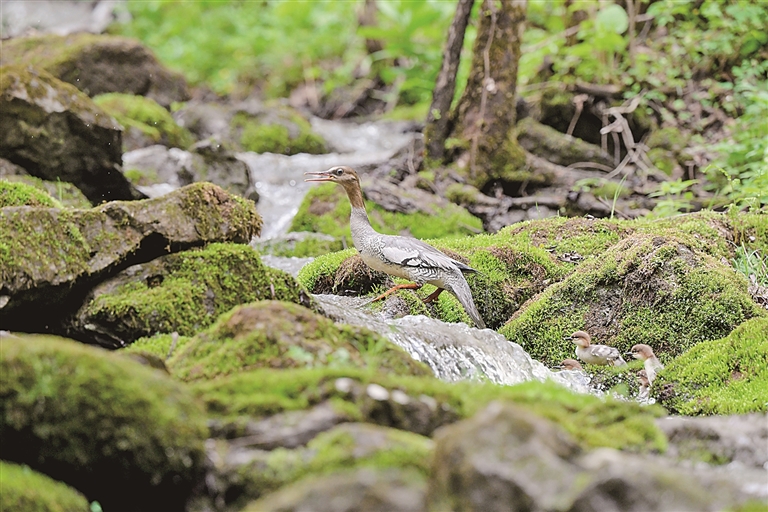 长白山密林中,中华秋沙鸭穿行在溪流间。徐祥华 摄