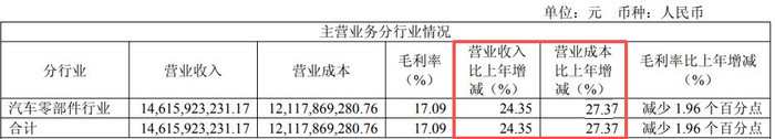 尽管在讲解期内获得诸多获利,但新泉股份最终仍交出了一份“增收不增利”的答卷。除了归母净利润和扣非净利润均录得下滑外,受行业竞争、降价压力等身分影响,新泉股份2025年主营业务(汽车零部件)毛利率比上年同时减少了1.96个百分点至17.09%。