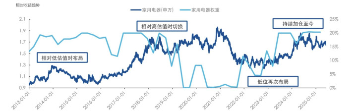 图:价值100指数对家电行业的成就权重变化,体现了“高抛低吸“的法式性