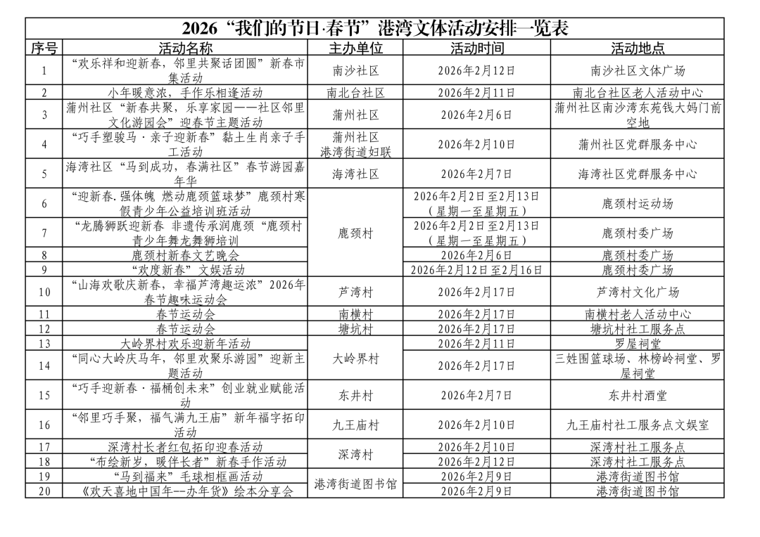 与此同期,以“咱们的节日·春节”为主题的系列体裁步履在街说念及各村(居、场)接踵开展,通过年俗体验、游园联欢等神情,让留穗过年的务工东说念主员在第二闾里相通感受到浓浓年味与暖心体恤,达成从“安下身”到“暖下心”的暖热跳跃。(点击稽察:咱们的节日·春节丨港湾春节指南已投递!6大主题步履陪你吵杂过大年)