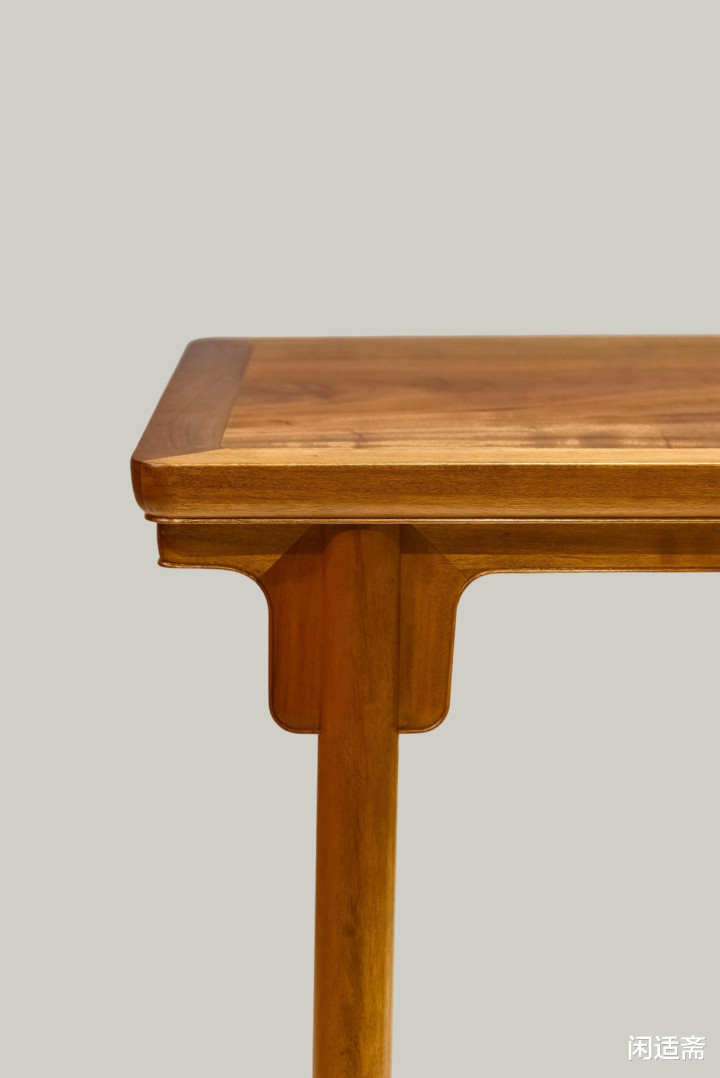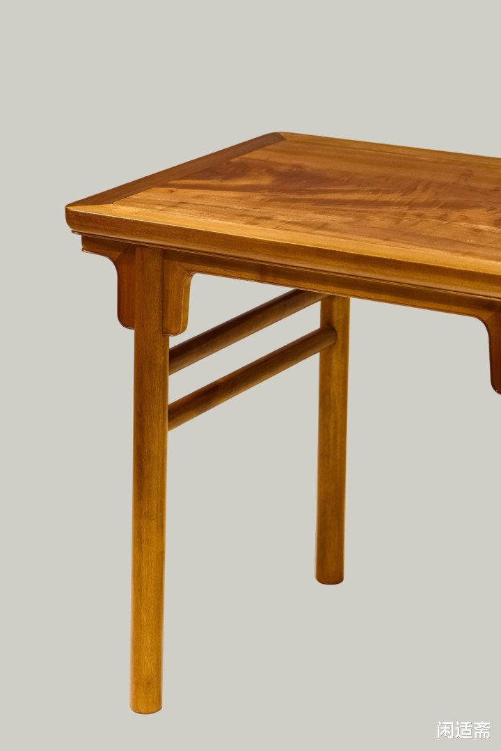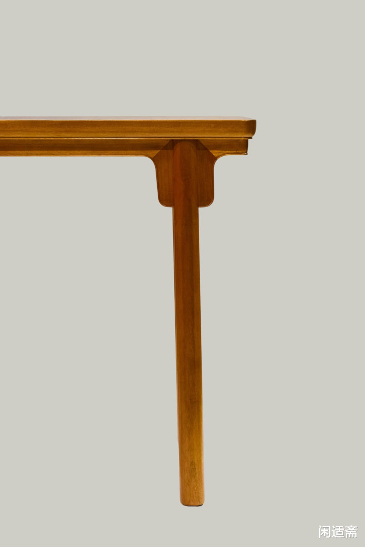 下方给与夹头榫结构,滚球(中国)官网app牙板与腿足衔尾紧密、知晓耐用;“一腿两牙”研讨,牙板导圆处分,表里双圆角打磨,线条畅达柔软,既强化结构安详性,又增添时髦质感。侧面横撑突破传统圆形、方形作念法,给与卵形制,线条清翠畅达,与桌面碗口线、牙板导圆细节高下呼应,全体造型和解斡旋,既保留古法韵味,又增添一点灵动,优雅中不失大气,尽显研讨巧念念。