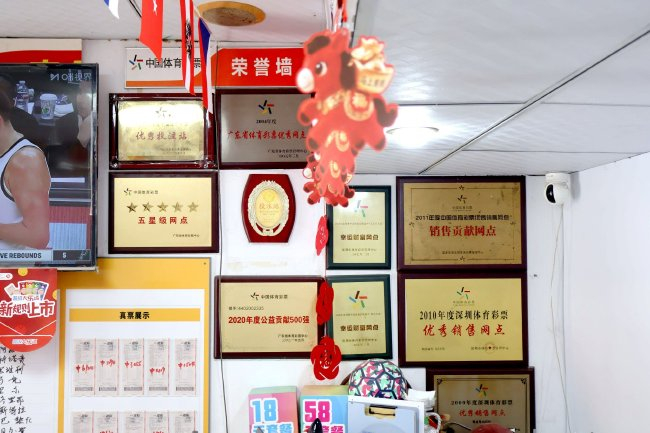 许东平自己便是一个足球迷,2004年,他在深圳开了这家体彩店,一晃也曾守了二十多年。2019年,许东平的体彩店第一次评上“五星级实体店”。来贴牌匾的专管员叫黄冬萍,进门就笑:“我第一次上岗,来的亦然你这家店。”